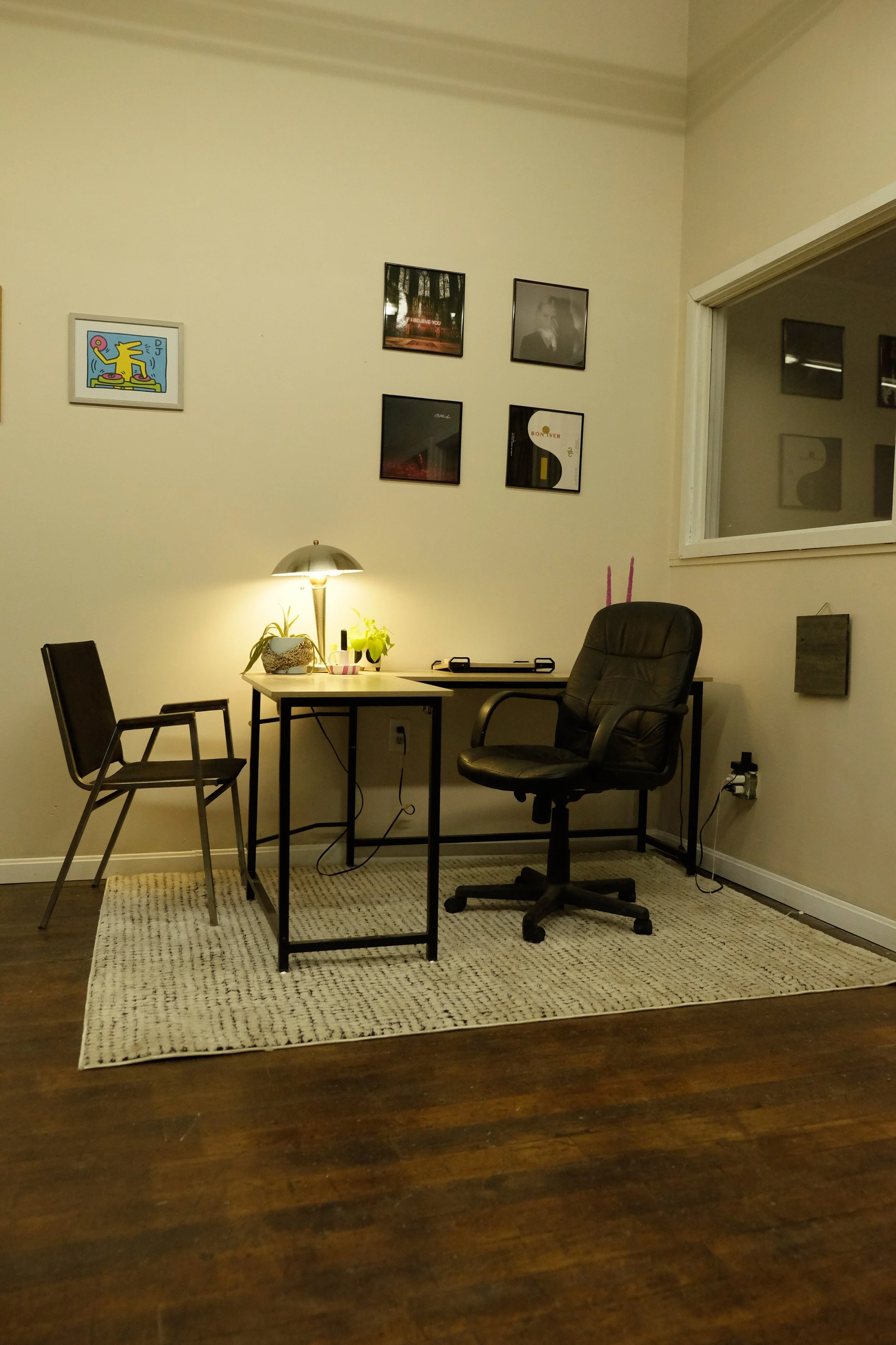 Work with an audio engineer to record instruments, vocals, or other sounds in our cozy studio. Plain and simple.